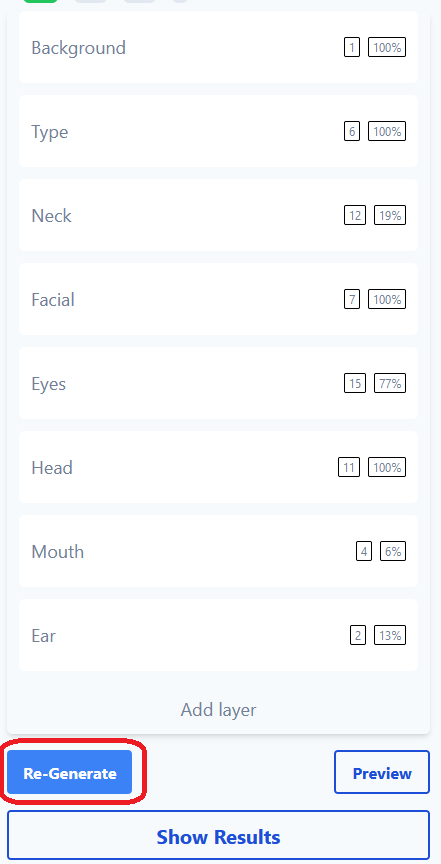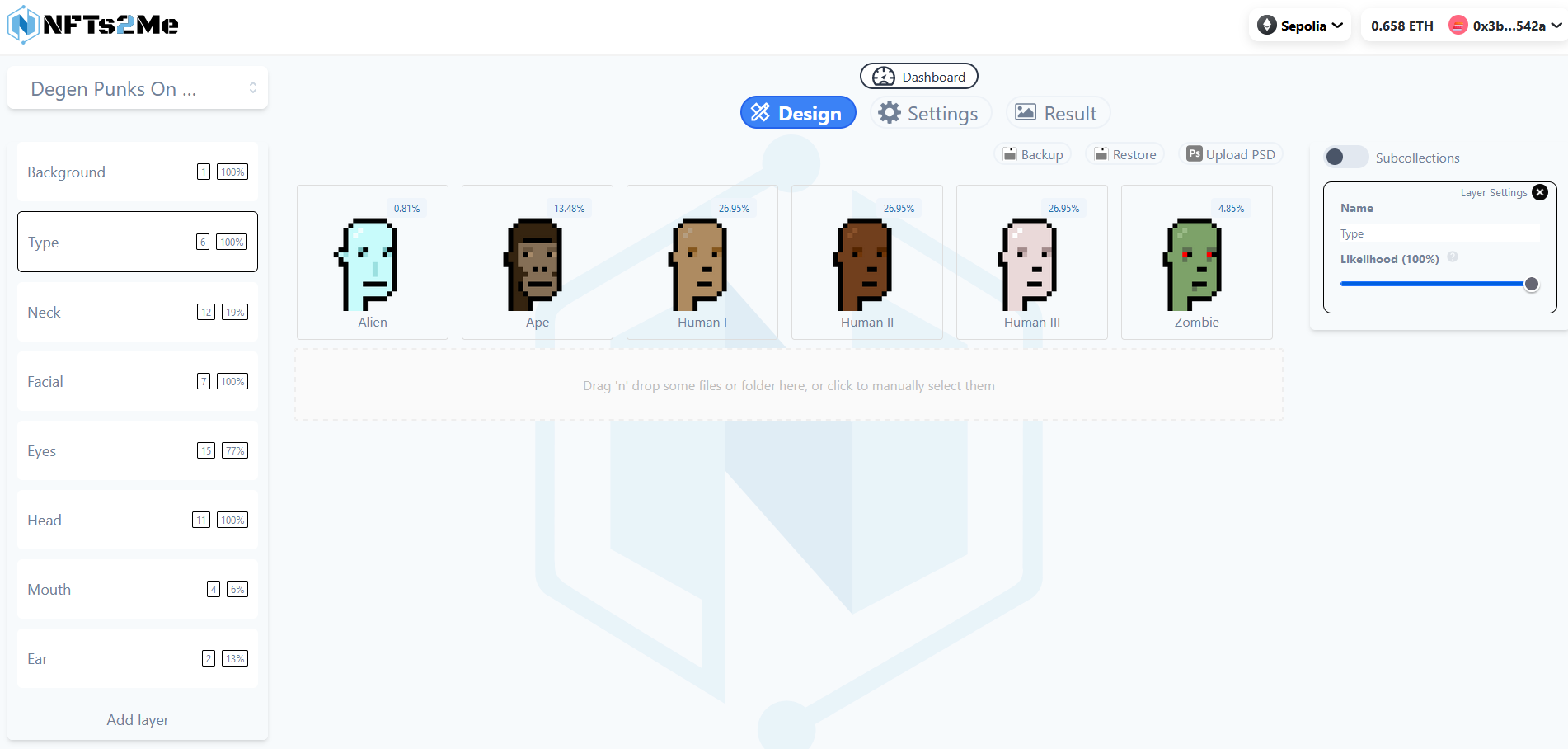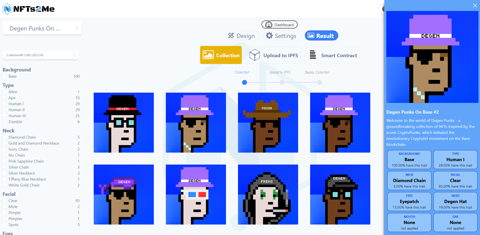 Then all NFTs combinations will be regenerated and you will see that new collection on "Result tab"