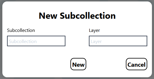 Just activate the option and create the subcollections you need. To activate it, click on the "Subcollections" button on the right-hand side. When it's active, the subcollections that make up your collection will be displayed above the layers.