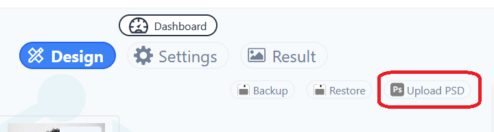 If you already have a PSD with configured layers, we have the option to upload it. The application will process the PSD and add the images of each layer along with its name.