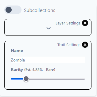 Certainly, we also allow the creation of subcollections. You can filter which layers will be available in each subcollection, so you could create a subcollection of NFTs with hats, for example.