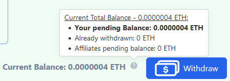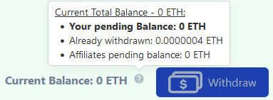 In "Current Balance," we'll see the funds we haven't withdrawn from the contract yet. If we hover over it, we can see the pending balance and the already withdrawn balance.