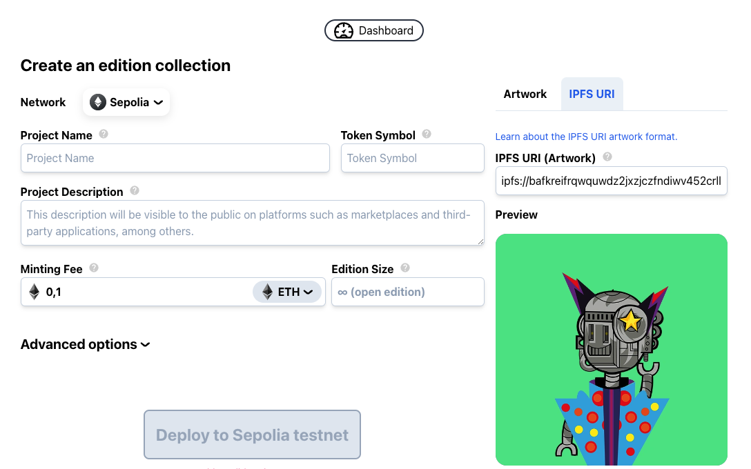 This mode is active when you create a new NFT project using the "Editions" or "Drops" mode.