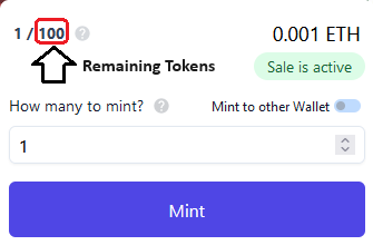 * **Show remaining NFTs supply**: You can hide the NFTs supply (and amount of remaining NFTs) on the minting page. Note that this won´t be hidden on the blockchain, which is public and immutable.