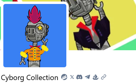 <figure><img src="https://3026745716-files.gitbook.io/~/files/v0/b/gitbook-x-prod.appspot.com/o/spaces%2FsfdCMm7uC0GmVAWnxMdG%2Fuploads%2Fgit-blob-a277bd724f319ac9dd66d85c90be07f885e0ce9d%2Fcyborg-links.png?alt=media" alt=""><figcaption><p>Link icons showed at minting page</p></figcaption></figure>