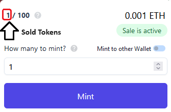 * **Show sold NFTs**: You can hide the amount of sold NFTs on the minting page. Note that this won´t hidden on the blockchain, which is public and immutable.