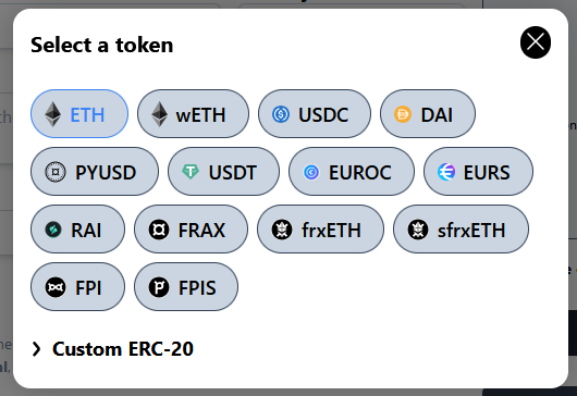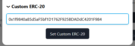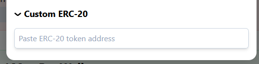 Custom Tokens: If the token you want is not listed, you can manually enter the address of a custom ERC-20 token.