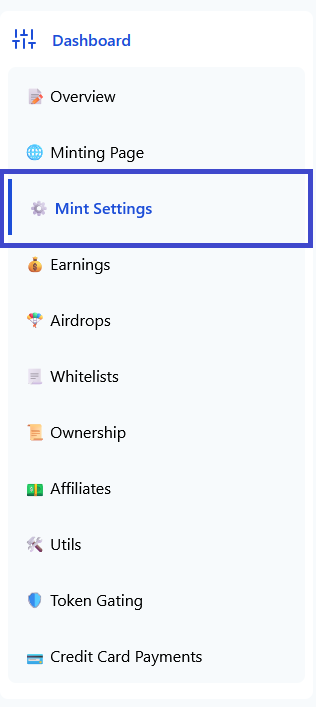 On the dashboard, locate the Mint Settings section. This is where you’ll find all options related to the minting process for your collection.