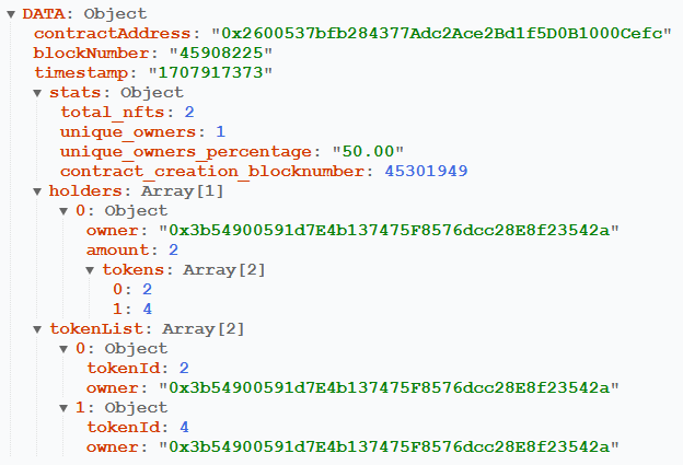 Tokenlist: An array containing information about lists of tokens in the collection. It only shows NFTs that have been minted and held by someone.