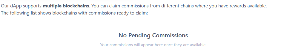 Once you have claimed all the networks, or if you don't have any commissions, the page will indicate that there are no commissions to claim on any blockchain.