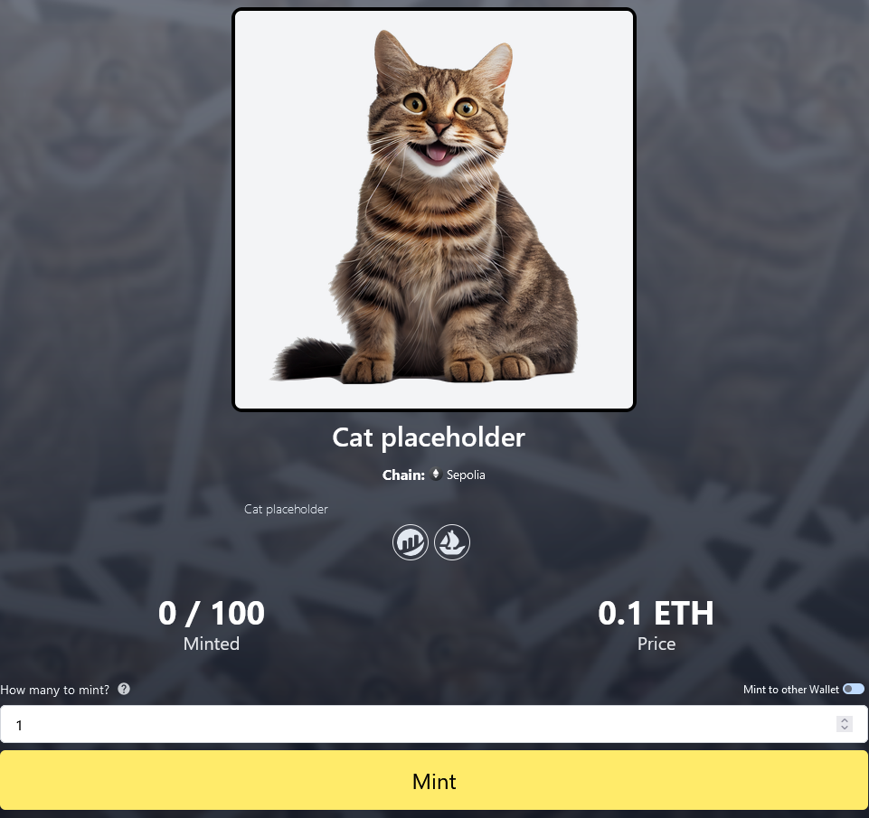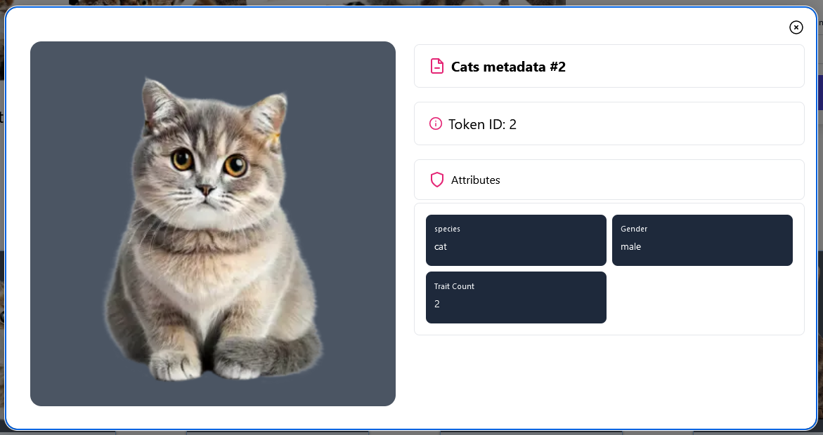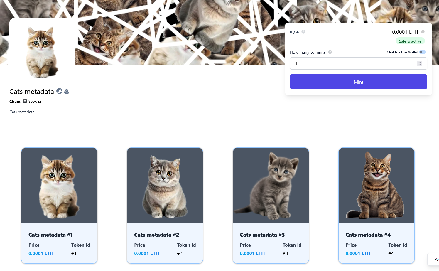 <figure><img src="https://3026745716-files.gitbook.io/~/files/v0/b/gitbook-x-prod.appspot.com/o/spaces%2FsfdCMm7uC0GmVAWnxMdG%2Fuploads%2Fgit-blob-2fe6908a8f22d842a8576fe8f03621c9127f3c4a%2FCatsMetadataMintingPage.png?alt=media" alt=""><figcaption></figcaption></figure>