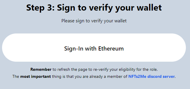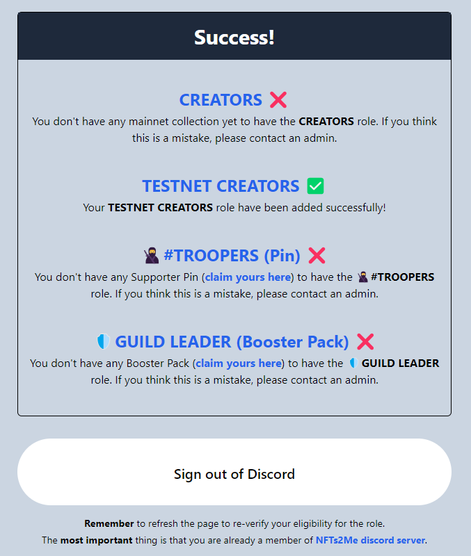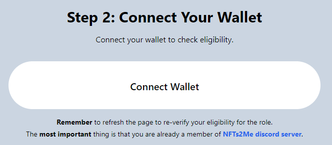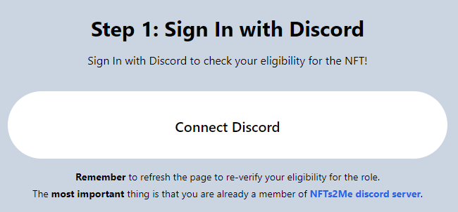 After completing the requirements, you need to go to the following link to obtain your roles. The most important thing is that you are already a member of [NFTs2Me discord server](https://discord.com/invite/KrJAaNUwDD).